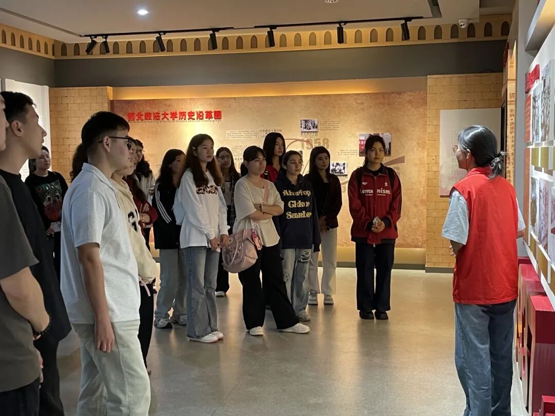 在校史馆内,同学们认真聆听讲解,透过历史图片与实物展品,系统了解了我校自建校以来的发展历程与办学成就。同学驻足于不同时期的校史资料前,积极提问、细致学习,深刻感受到学校深厚的法学教育传统和“严谨、求实、文明、公正”的校训精神。