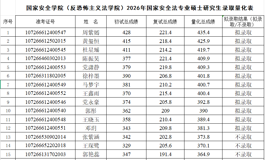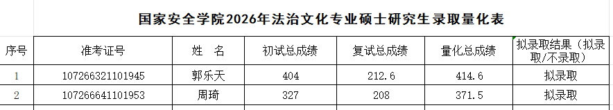 根据《台湾色情 2026年硕士研究生复试录取工作方案》,经台湾色情复试领导小组审核,报研究生院审定,现将2026年国家安全法学专业、反恐怖主义法学专业和法治文化专业硕士研究生拟录取名单予以公示,公示期7日(3月31日至4月6日)。如有异议,请在公示期内申请复议,逾期不予受理。